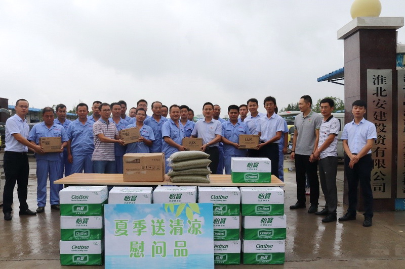 為有效應對高溫天氣,保障員工身體健康,進一步提高一線員工士氣,8月3日,安建投資公司黨總支委員、副總經理,淮北安建投資有限公司董事長黃國平攜項目公司全體員工前往中湖治理一、二標段兩個項目部開展“送清涼”活動,慰問堅守在工作崗位的項目職工,為他們送去項目公司的真摯問候。
